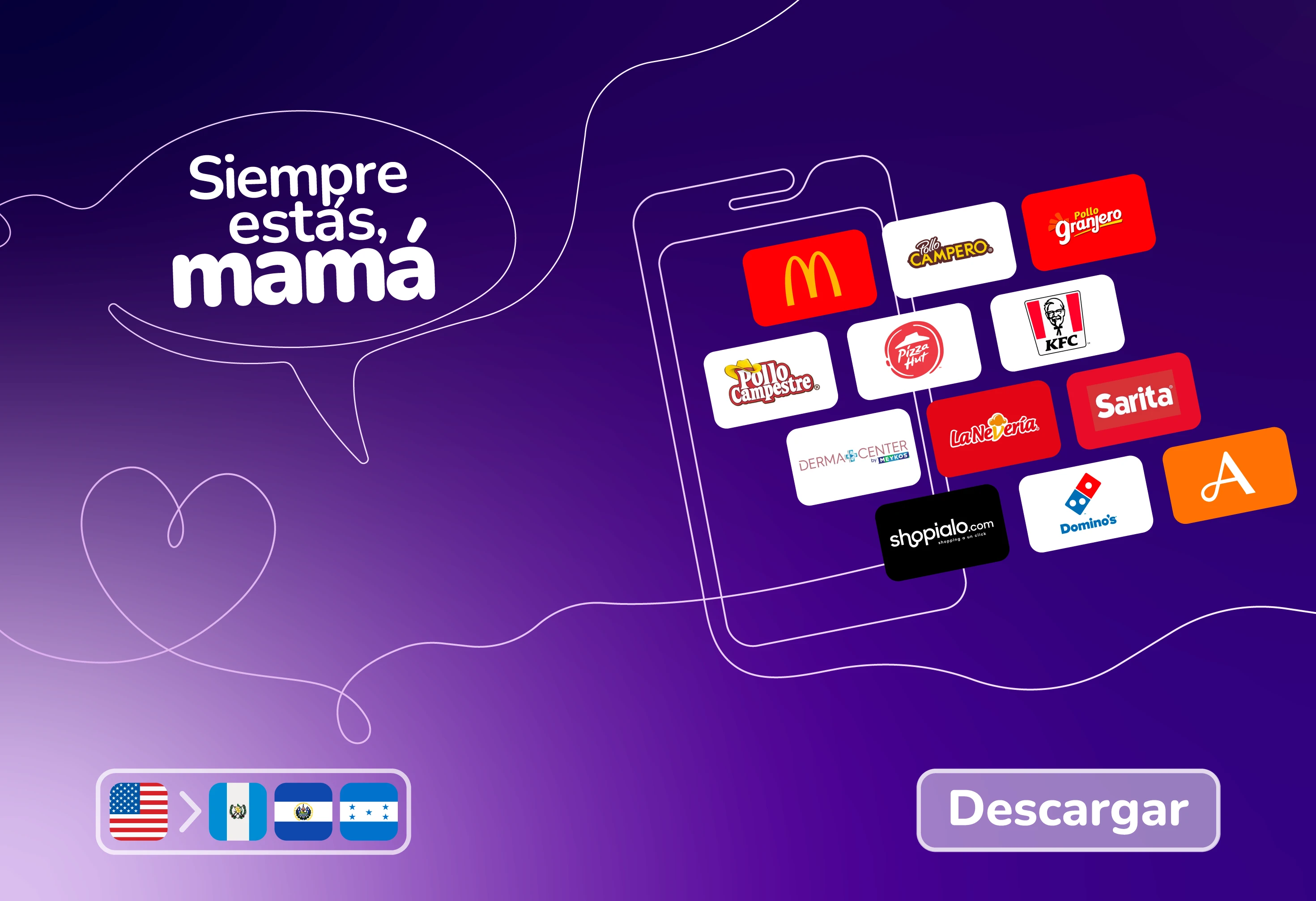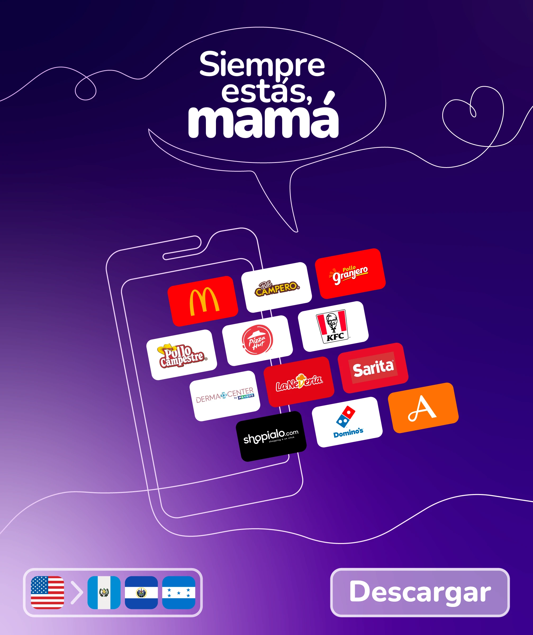 Actualmente podras enviar vales a tus familiares a los paises: Estados Unidos, Guatemala, Honduras, Nicaragua, Costa Rica, El Salvador, Argentina, México, Chile, Colombia, Panamá, Perú, Uruguay, Republica Dominicana y Venezuela